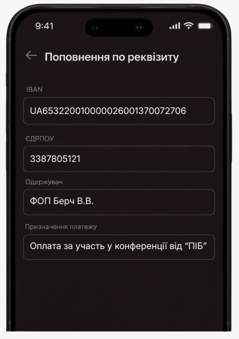 Реквізити для оплати