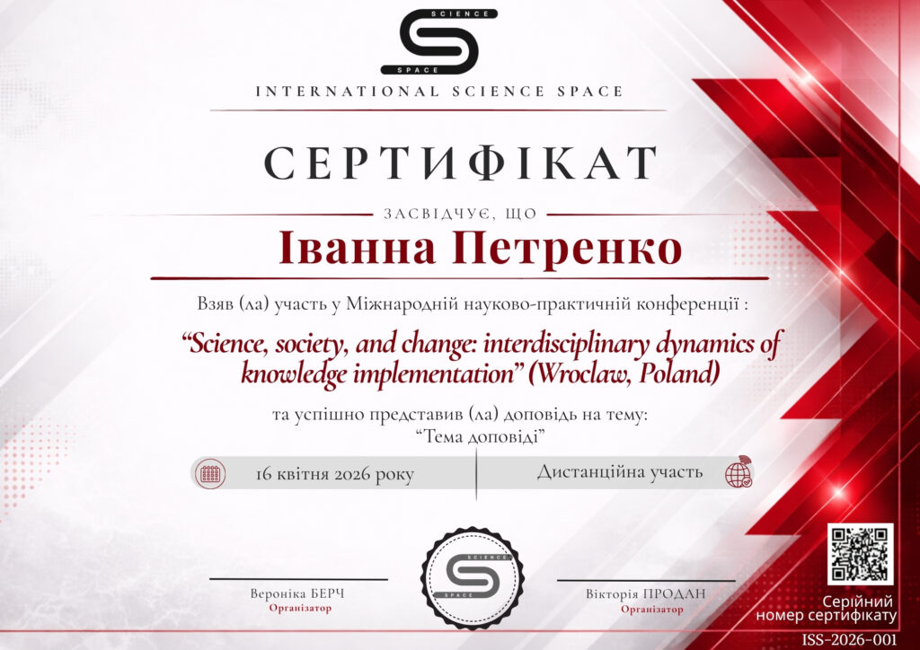 Кожен учасник міжнародної конференції за бажанням може безкоштовно отримати електронний сертифікат учасника. Сертифікати будуть доступні для завантаження у вкладці Архів.